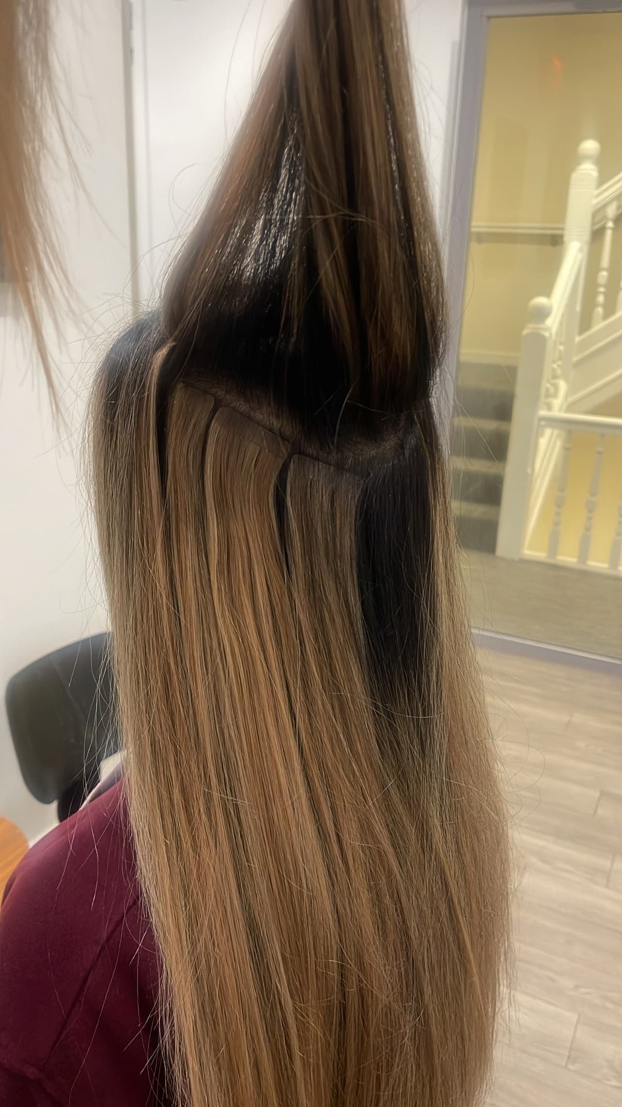 Add instant length, fullness, and volume with expert hair extensions in Boston. We offer tape-in, beaded, and keratin bond methods for a seamless, natural blend that enhances your everyday style.